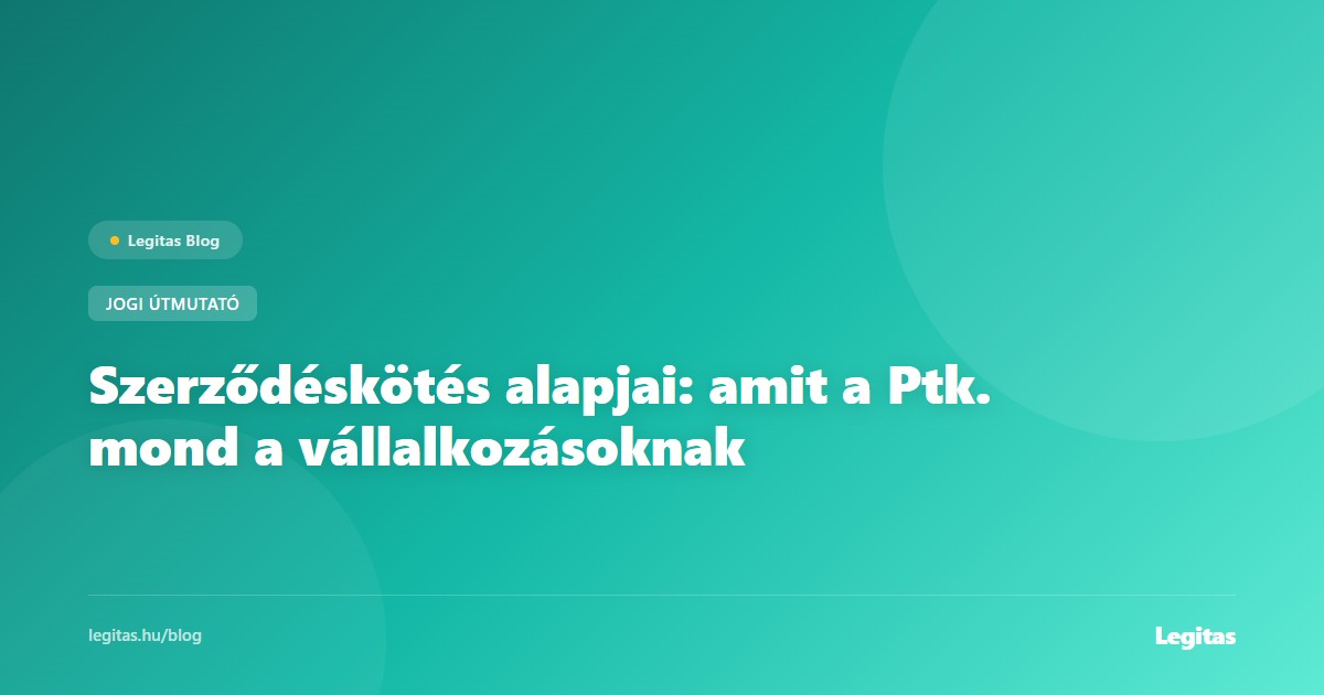 A Ptk. szerződéses szabályainak ismerete nem jogászi kiváltság, hanem minden vállalkozó alapkompetenciája kellene legyen. Az ajánlat-elfogadás mechanizmusától az alaki követelményeken és érvénytelenségi okokon át a szerződésszegés jogkövetkezményeiig — ezek a szabályok határozzák meg, hogy egy üzleti megállapodás jogilag mennyire áll szilárd alapon.